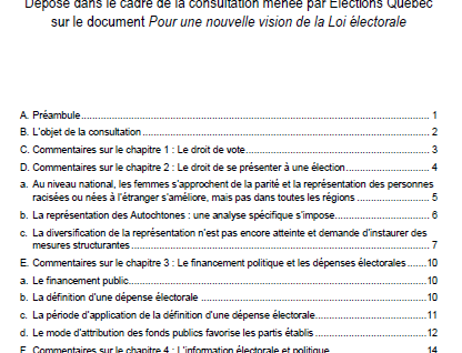 Table des matières – Élections québécoises de 2022 et précédentes : s’indigner et remplacer le système électoral